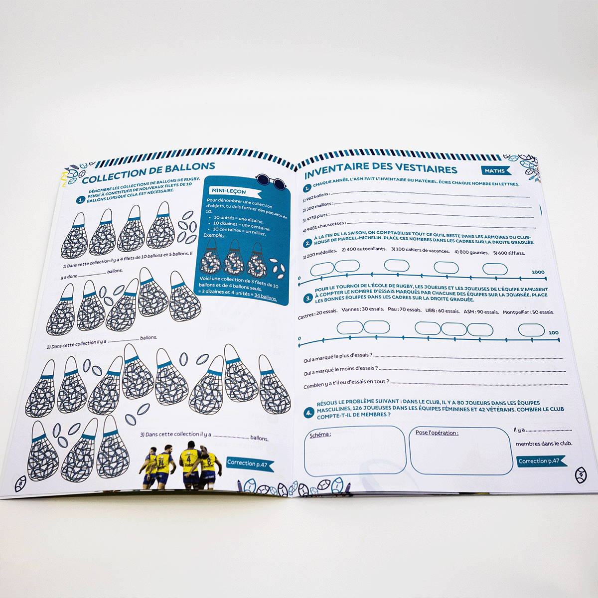 Chaque cahier propose une sélection d'exercices varisés en français, mathématiques, histoire géographie et sciences. L'univers du rugby est présent tout au long des pages à travers des jeux, quiz, énigmes et illustrations inspirées de l'équipes
