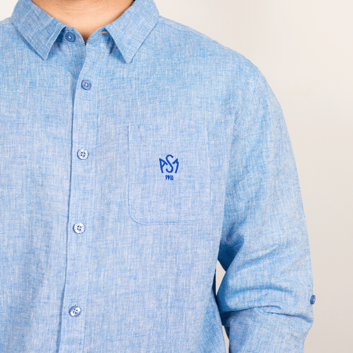 Affichez un style à la fois élégant et décontracté avec cette chemise d'été bleu azur pour homme. Conçue dans un tissu léger et agréable à porter, elle est idéale à pour les journées ensoleillées ou les soirées estivales. La poche sur la poitrine apporte une touche casual, tandis que le logo ASM brodé en bleu marine rappelle discrètement votre attachement au club. A porter boutonnée pour un look soigné ou ouverte avec un t-shirt pour un style plus décontracté, c'est la pièce parfaite pour un été aux couleurs de l'élégance.