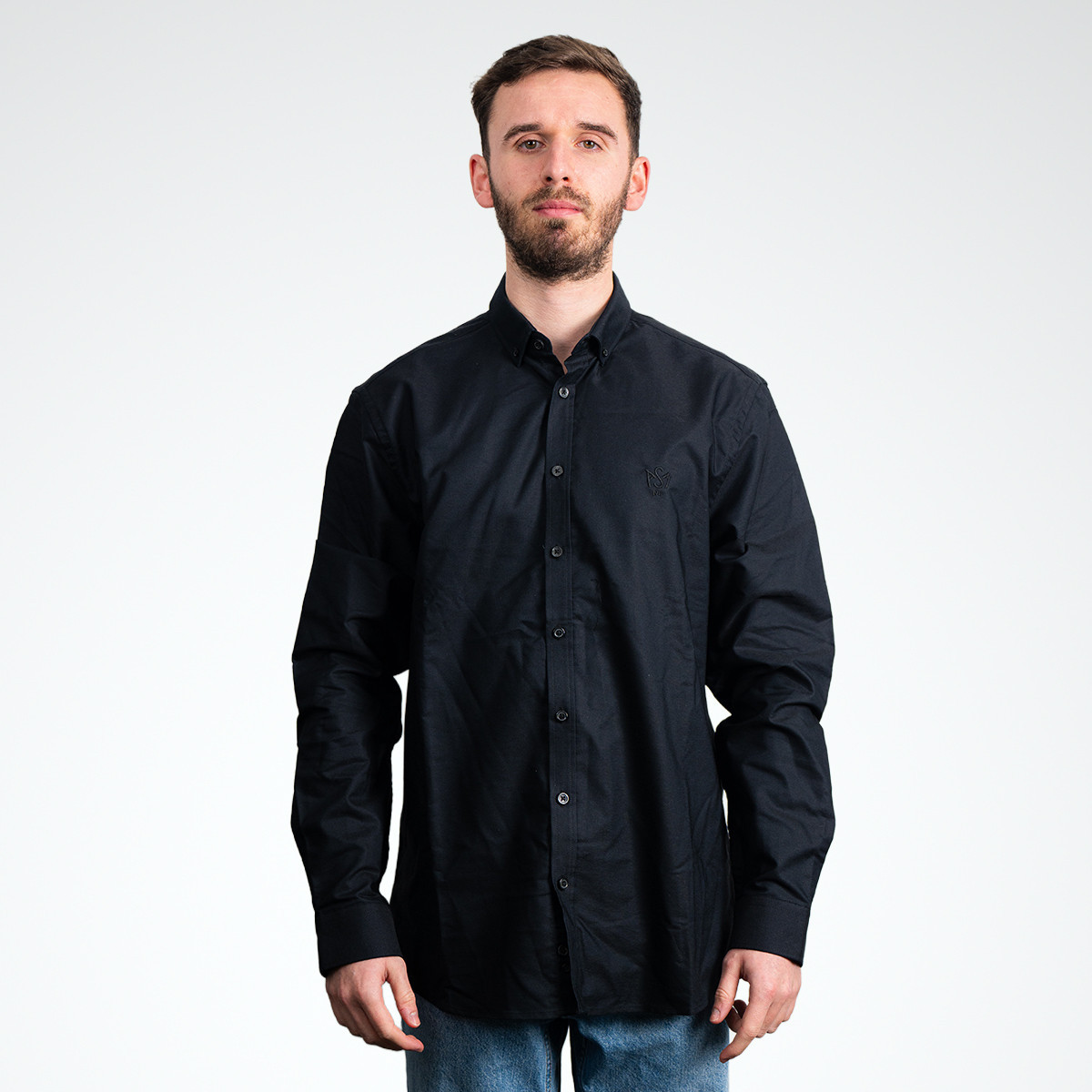 Chemise à manches longues brodée - disponible en noir, bleu, blanc