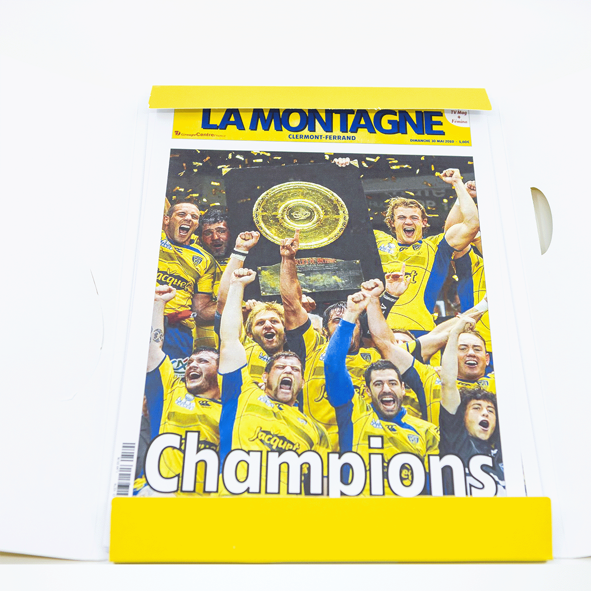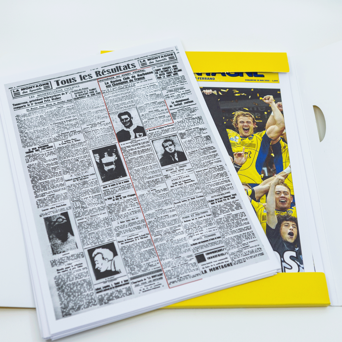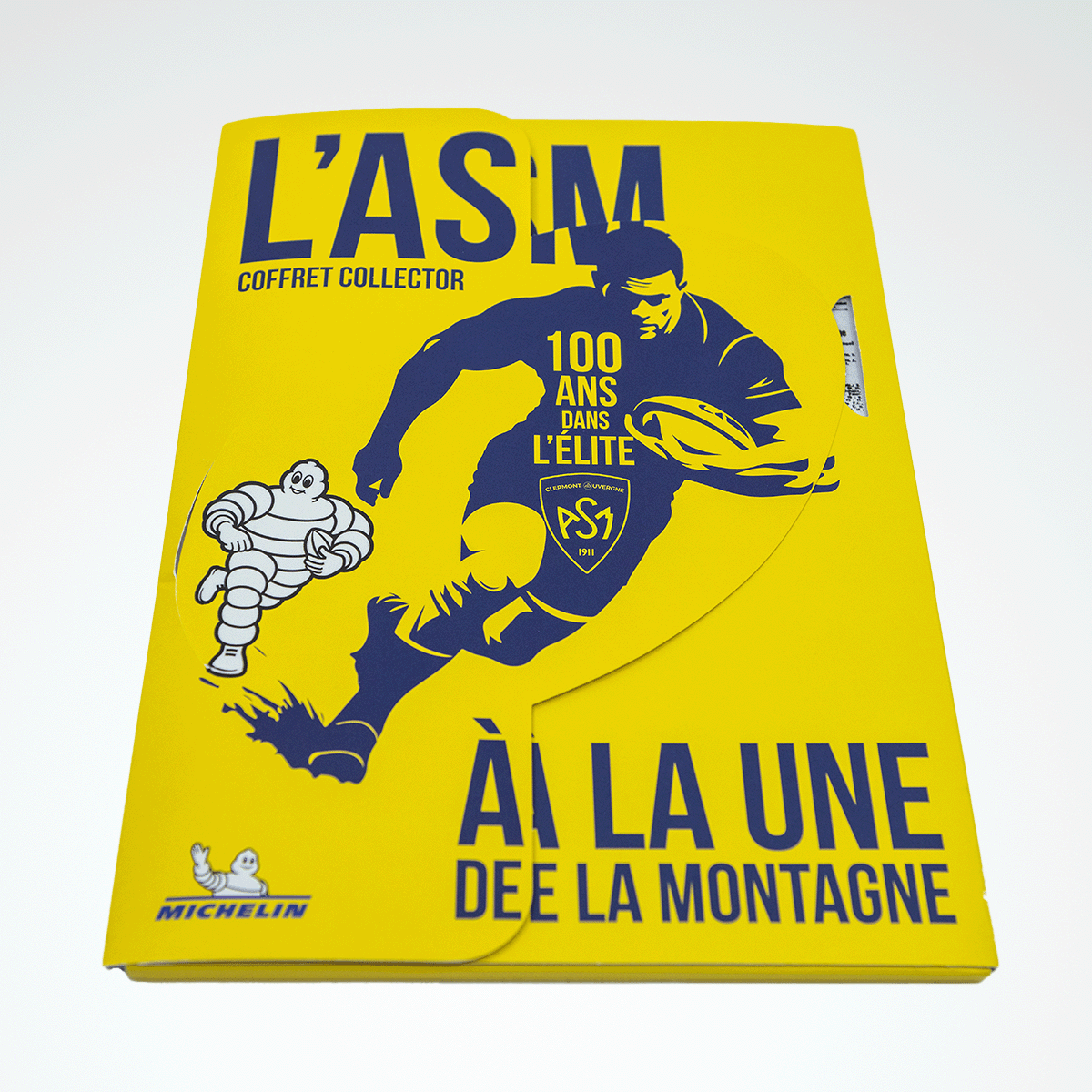 Pour célébrer les 100 ans de l’ASM dans l’élite du rugby français, La Montagne vous propose un coffret collector unique rassemblant les 40 plus belles Unes du journal consacrées au club clermontois. Chaque Une est réimprimée au recto et accompagnée, au verso, d’un décryptage retraçant les moments forts et les grandes étapes de l’histoire de l’ASM.