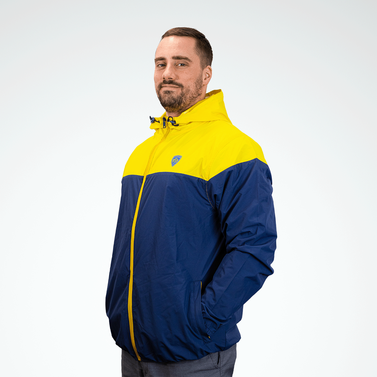 Ce coupe-vent bleu marine et jaune est l'accessoire idéal pour afficher votre soutien à l'ASM Rugby tout en restant protégé des intempéries. Pratique et stylé, ce coupe-vent vous accompagnera avec élégance lors de vos déplacements quotidiens ou pour assister aux matchs.