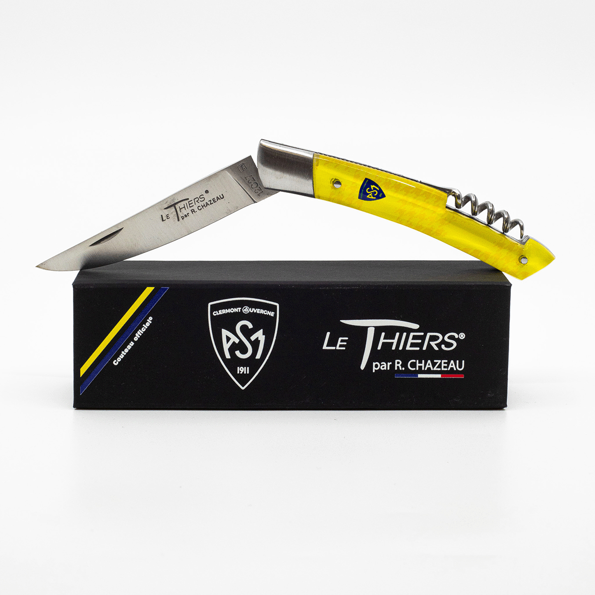 Découvrez l'élégance et le savoir-faire français avec ce couteau LE THIERS®. Doté d'un manche en résine aux couleurs emblématiques des maillots de la saison 2025/2026, ce couteau allie style, robustesse et précision. Pratique, il est équipé d'un tire-bouchon intégré, parfait pour accompagner vos moments conviviaux. Livré avec son coffret, il est idéal pour les amateurs de rugby et les passionnés de belle coutellerie. Un souvenir incontournable ou un cadeau d'exception pour tous les supporters du club.