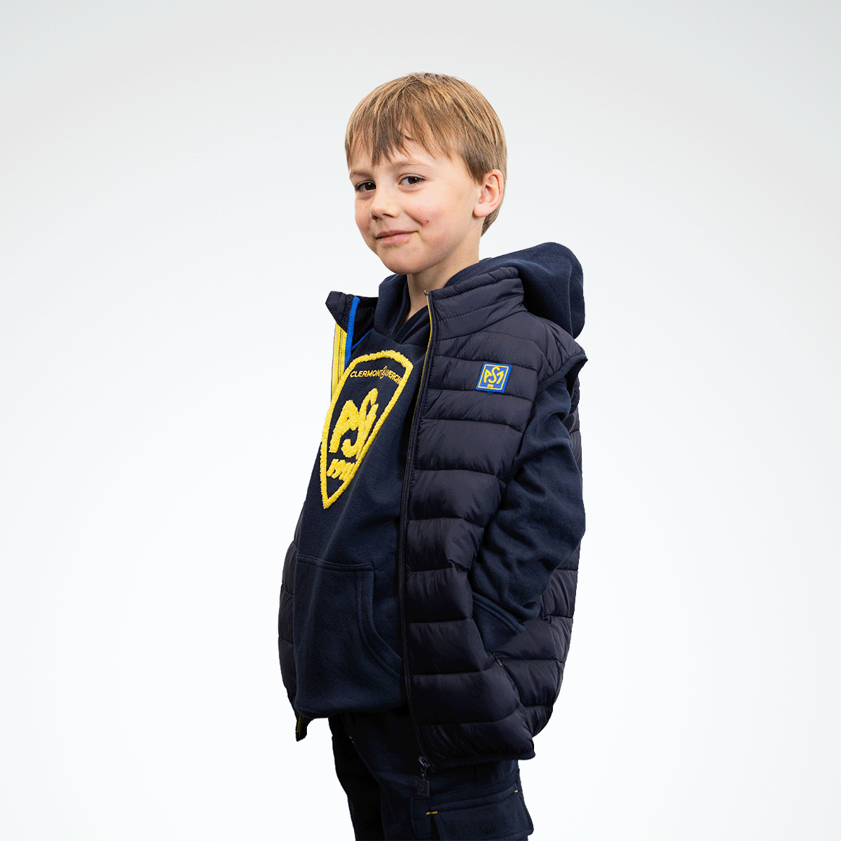 Affrontez le froid avec style grâce à la doudoune sans manche LARK pour enfant. En bleu marine, cette pièce est équipée d'un col fourré effet mouton pour garantir chaleur et confort. La fermeture éclair ornée d’un trait jaune vif met en avant les couleurs emblématiques de l’ASM, tandis que les deux poches pratiques à l’avant ajoutent une touche fonctionnelle. Légère et polyvalente, cette doudoune est parfaite pour les jeunes supporters actifs qui souhaitent rester au chaud tout en affichant fièrement leur soutien à l’équipe. Disponible aussi en taille adulte, parfait pour les supporters qui veulent afficher leur passion avec style !