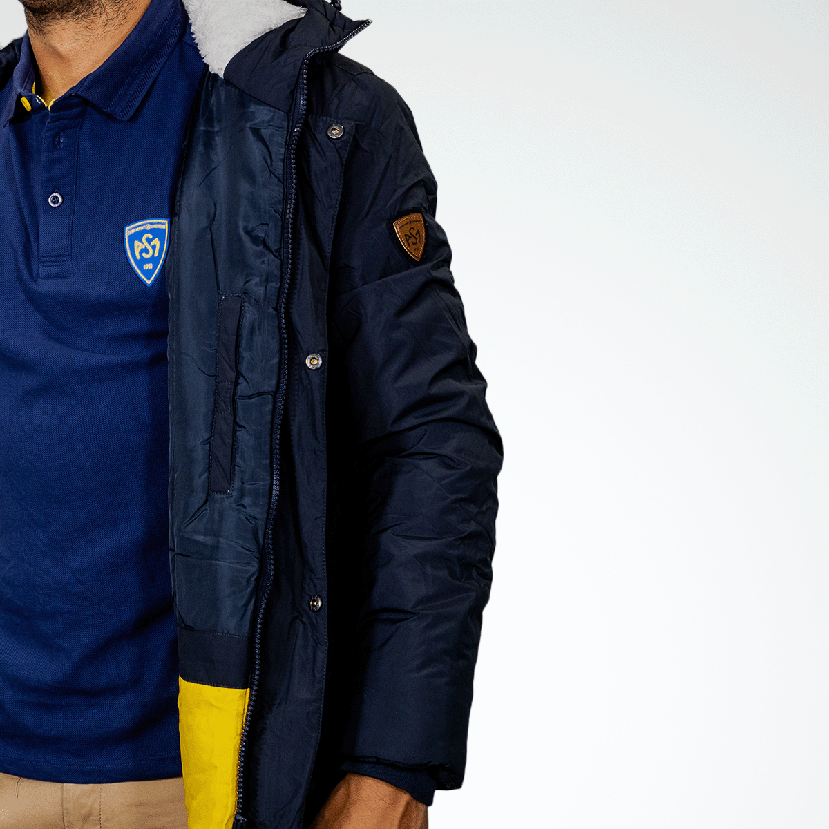 Conçue pour affronter l’hiver avec style, cette parka marine associe confort et élégance. Son intérieur jaune contrastant rappelle avec subtilité les couleurs emblématiques du club. Dotée de poches pratiques sur les côtés et d’un logo en simili cuir discret sur le bras, elle offre une allure raffinée et moderne. Sa capuche rembourrée dans un tissu plus chaud assure une protection optimale contre le froid et le vent. Une pièce incontournable, pensée pour allier fonctionnalité, chaleur et esprit ASM au quotidien.