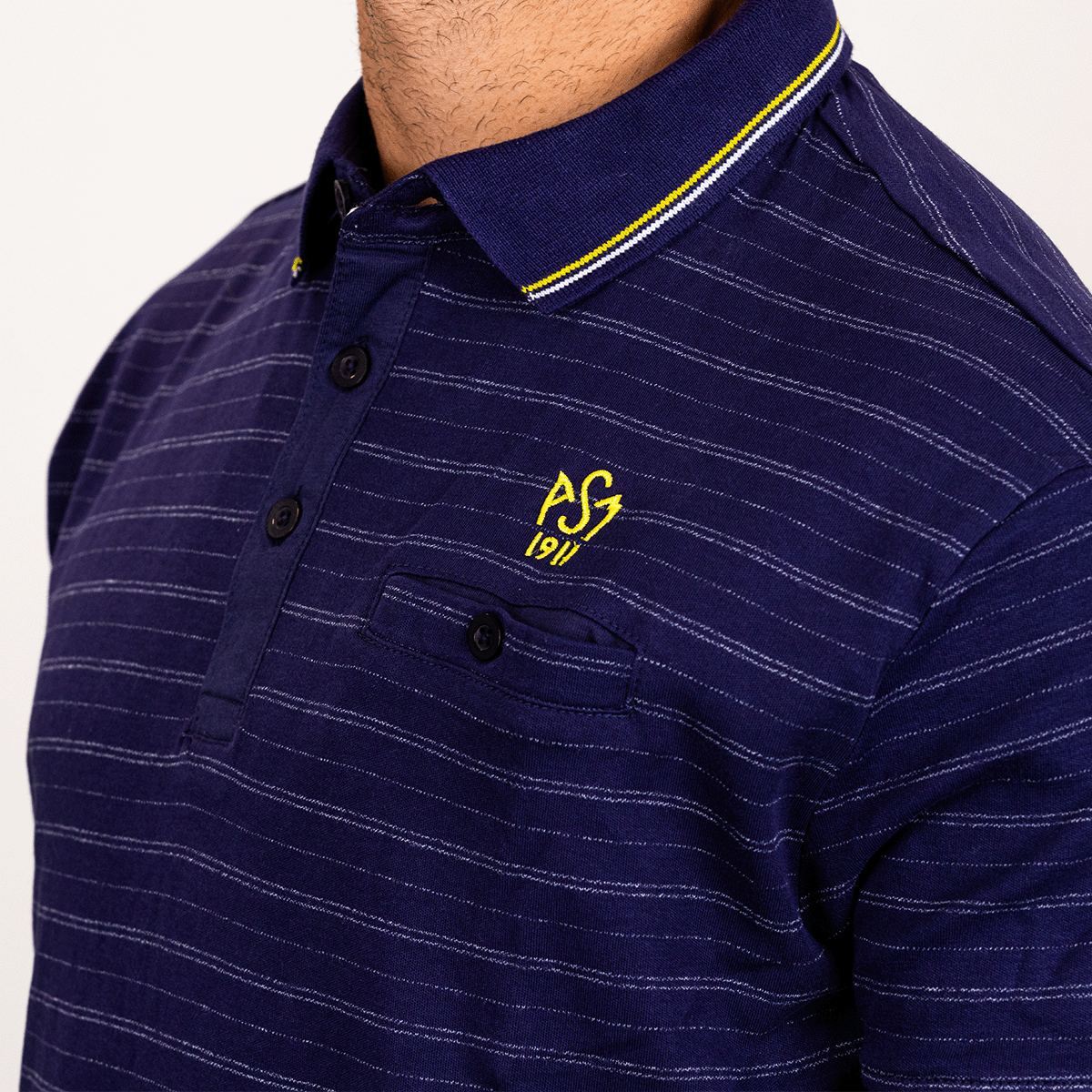 Affirmez votre style avec ce polo raffiné, alliance parfaite d’élégance et de passion sportive. Son tissu marine intemporel est rehaussé par les légères rayures jaunes contrastant, tandis que le logo brodé en jaune sur la poitrine apporte une touche subtile et sophistiquée. Confortable et respirant, ce polo à manches courtes s’adapte aussi bien aux moments d’effervescence en tribune qu’à une tenue casual chic du quotidien.