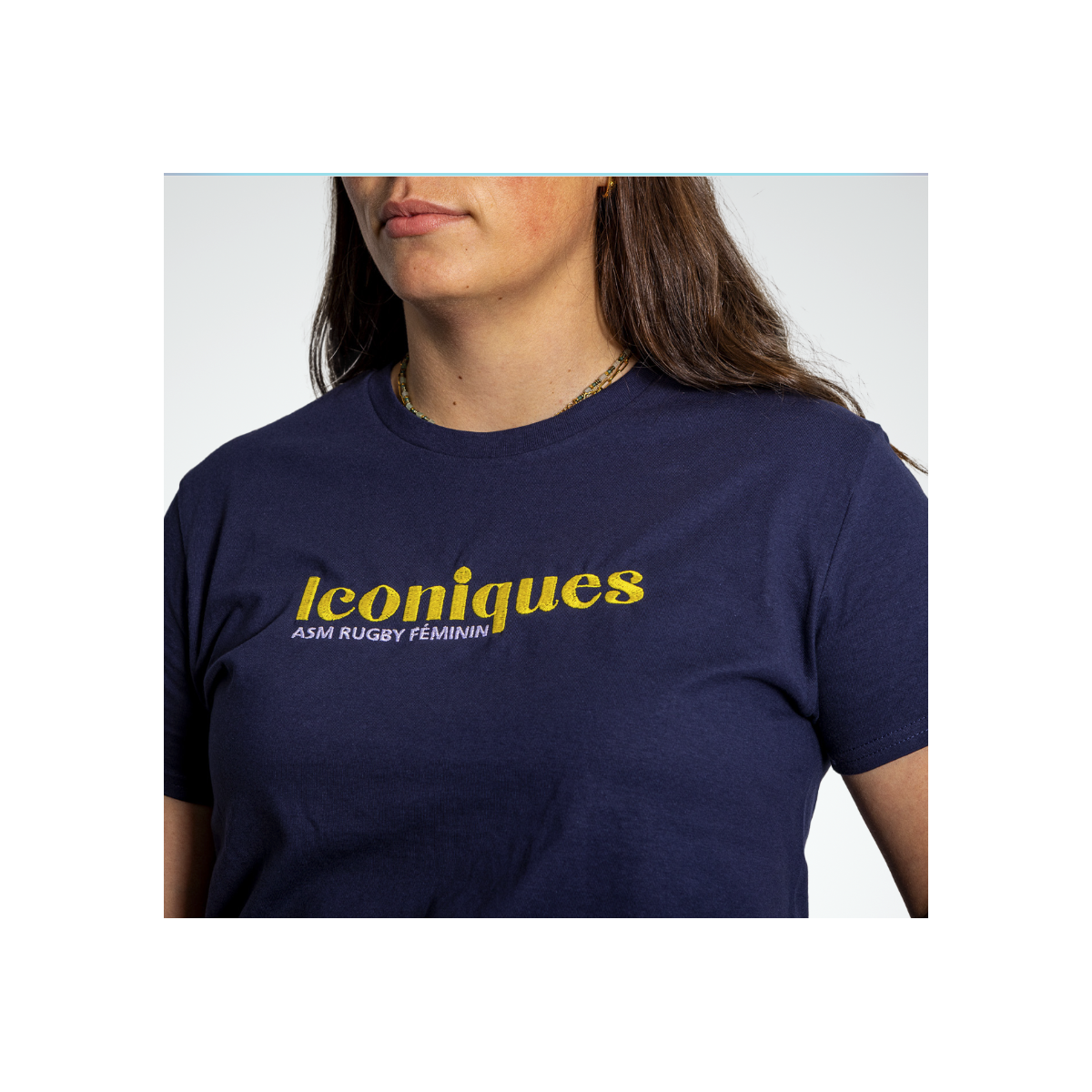 Le t-shirt marine à manches courtes pour femme avec broderie "Iconique" est l'accessoire parfait pour afficher votre soutien à l'ASM RUGBY FEMININ avec style et élégance. Confortable et original, ce t-shirt vous permettra d'afficher fièrement votre passion pour votre équipe préférée
