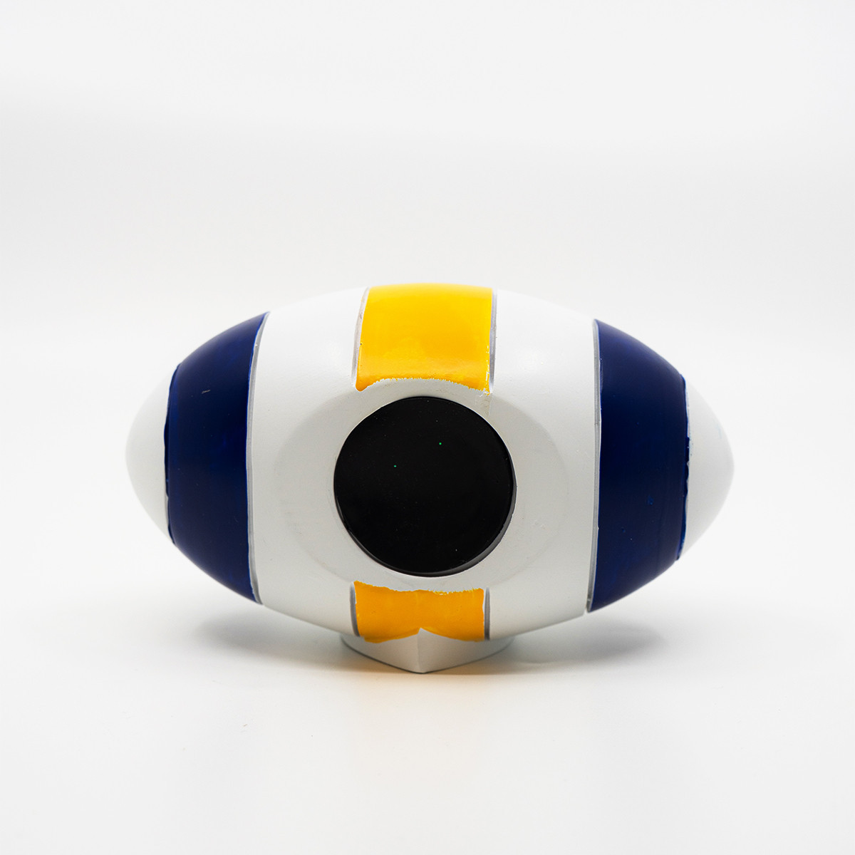 Craquez pour cette tirelire en forme de ballon, aux couleurs blanc, jaune et bleu, parfaite pour les supporters et les amateurs d’objets déco originaux. À la fois ludique et décorative, elle accompagnera petits et grands dans leurs économies du quotidien.