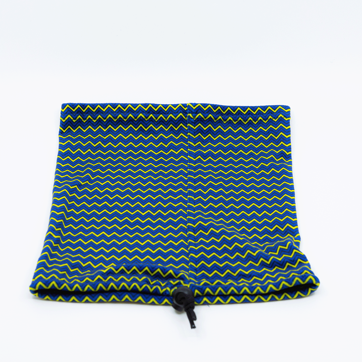 Tour de cou polaire aux couleurs jaunes et bleues.