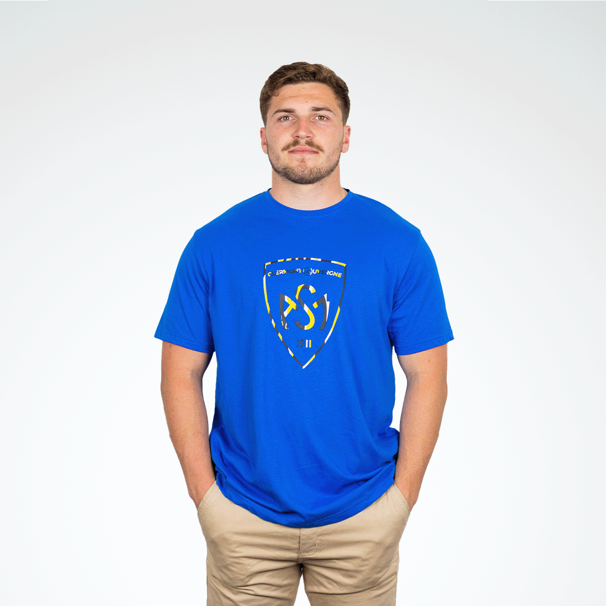Affichez vos couleurs avec style grâce à ce tee-shirt disponible en jaune, bleu roi et bleu marine. Orné d’un logo en couleur, il apporte une touche dynamique et moderne à votre tenue. Confortable et résistant, il se porte aussi bien au quotidien que les jours de match pour montrer votre fierté clermontoise.
