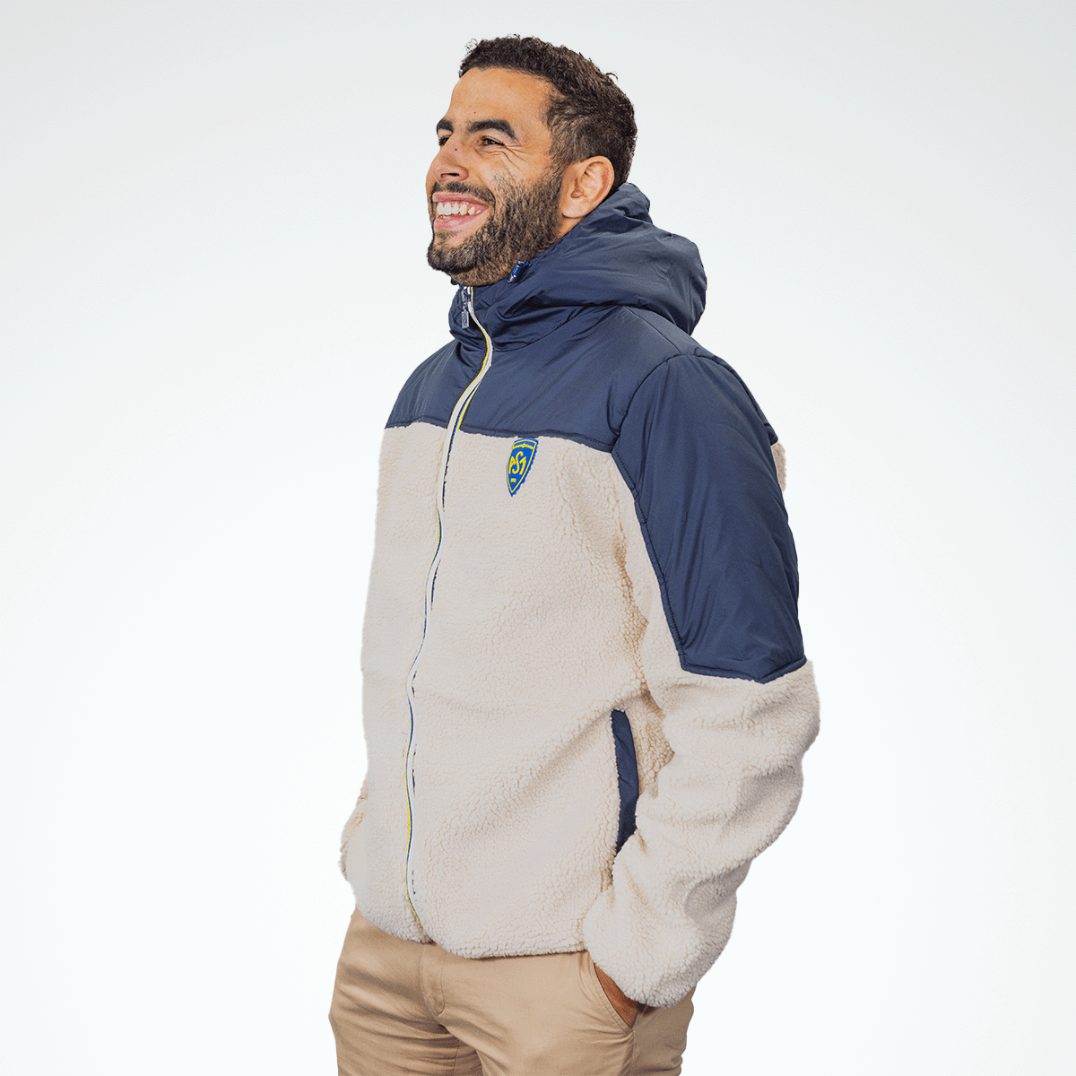 Alliez chaleur et style avec cette veste en sherpa ultra-douce, parfaite pour affronter le froid avec confort. Le haut des épaules en tissu imperméable bleu marine apporte une touche moderne et protectrice, idéale pour les journées humides. Son design est complété par une capuche pratique, un logo ASM sur la poitrine, ainsi qu’une fermeture zippée ornée d’une ligne jaune contrastante. Les deux poches latérales offrent confort et praticité au quotidien. Une pièce à la fois tendance et fonctionnelle, indispensable aux supporters exigeants.